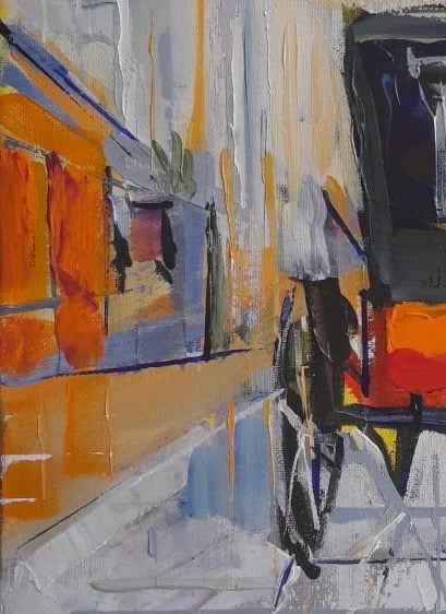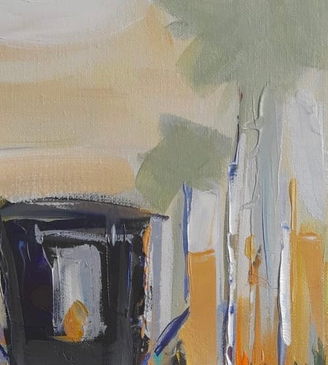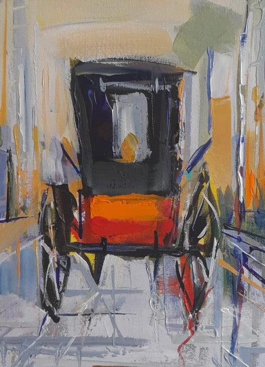 In this evocative cityscape, Willy Pérez captures the moody beauty of rain-slicked streets and blurred motion. A solitary carriage moves through a glowing urban corridor, its form both solid and spectral. With palette knife textures and reflective strokes, Pérez explores the intersection of light and weather.