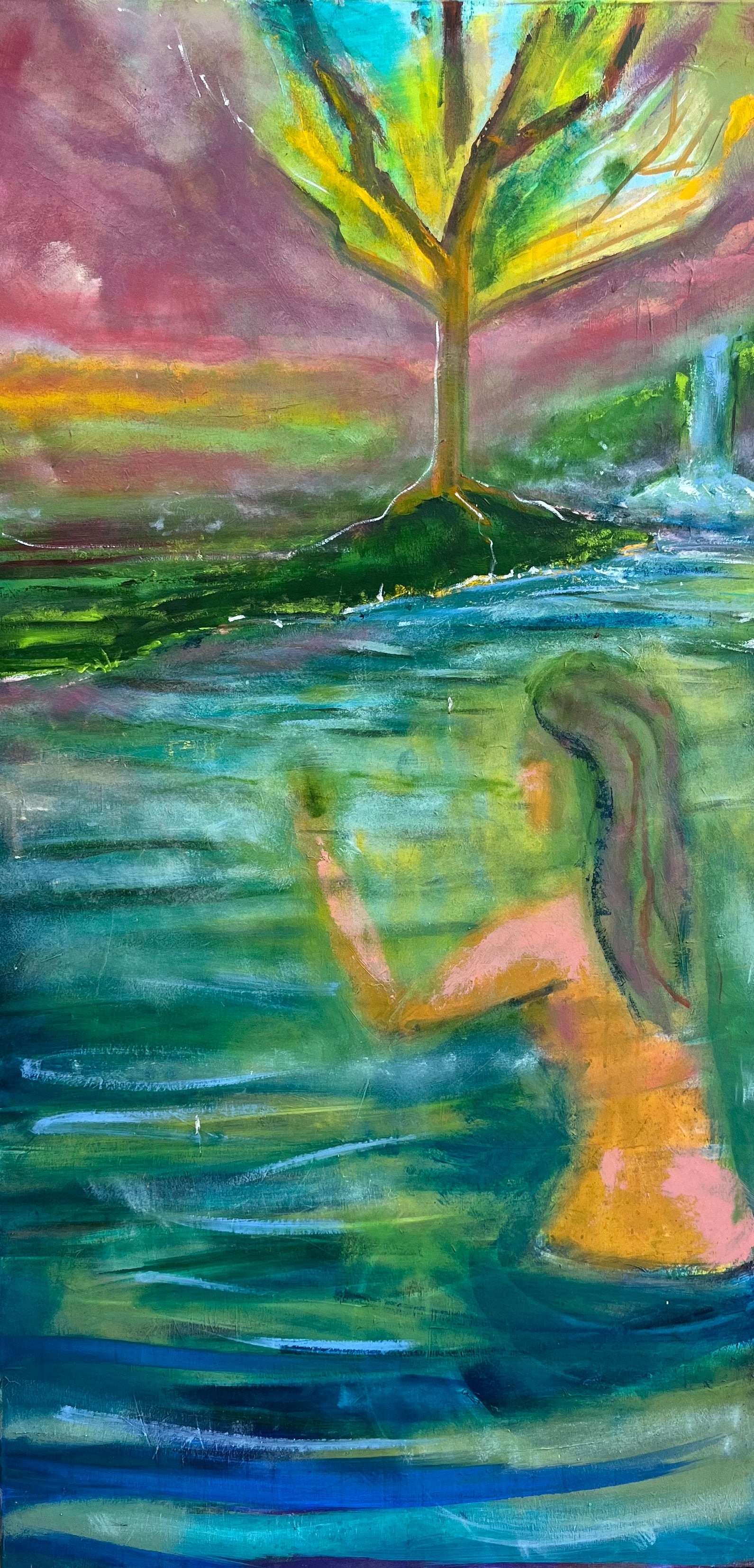 "Missing Paradise" by oil painter Guillo Pérez 3 is a striking piece that captures the disconnect between modern technology and the natural world. The painting depicts a woman engrossed in her cell phone, seemingly oblivious to the beauty of her surroundings. The woman is painted in warm, earthy tones, while the background is dominated by cool blues and greens, creating a stark contrast between the two. The brushwork is loose and expressive, with visible strokes that add a sense of movement and energy to the piece. The composition is cleverly arranged to draw the viewer's attention to the woman's face and phone, with the background fading away into the distance. Overall, "Missing Paradise" is a powerful reminder to disconnect from technology and appreciate the beauty of the world around us.