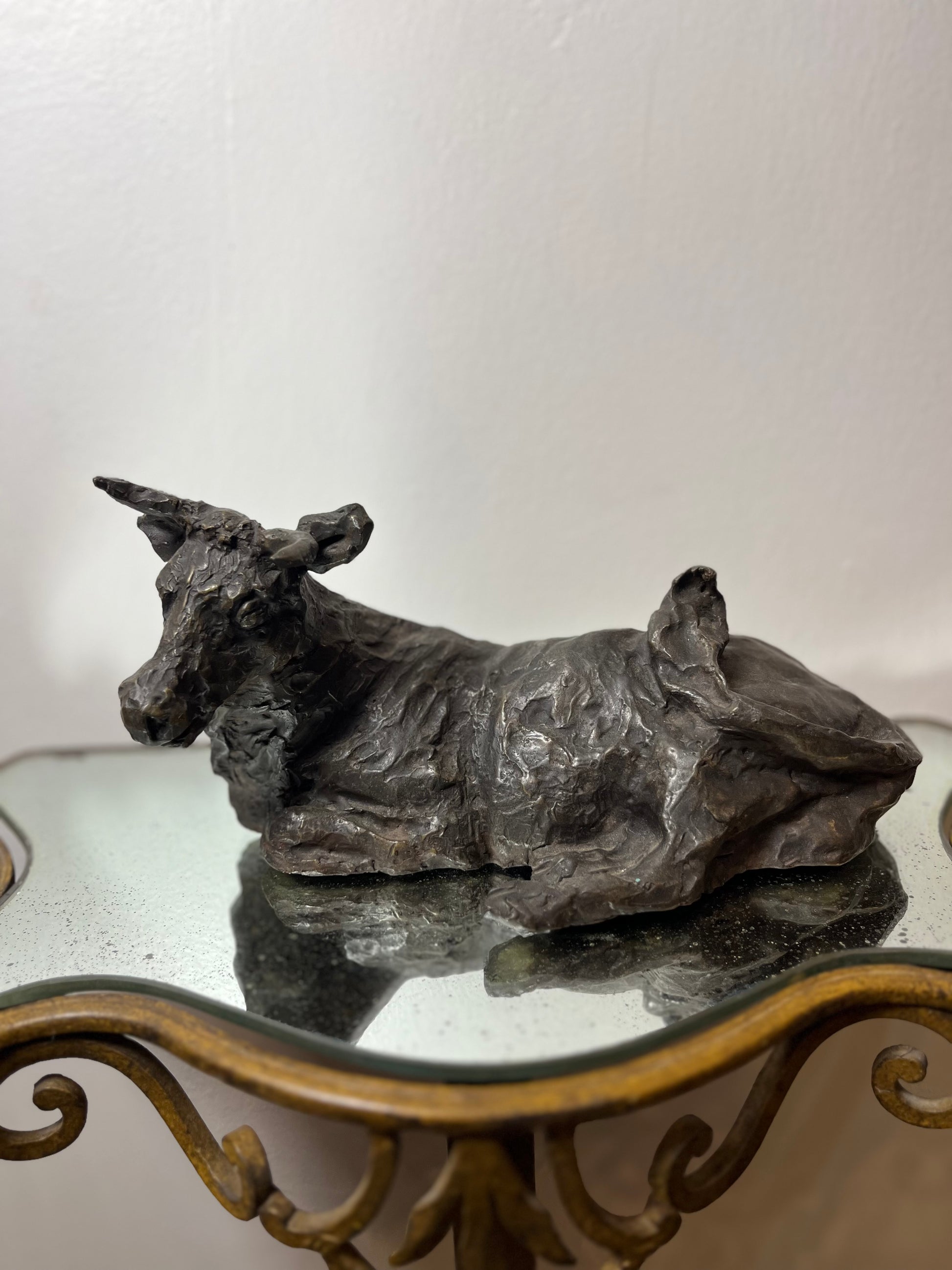 The Ox sits with grounded strength: patient, powerful, and unwavering. In Ailene Fields’ signature style, this bronze sculpture captures the mythic steadiness of a creature tied to labor, endurance, and ancient symbology.