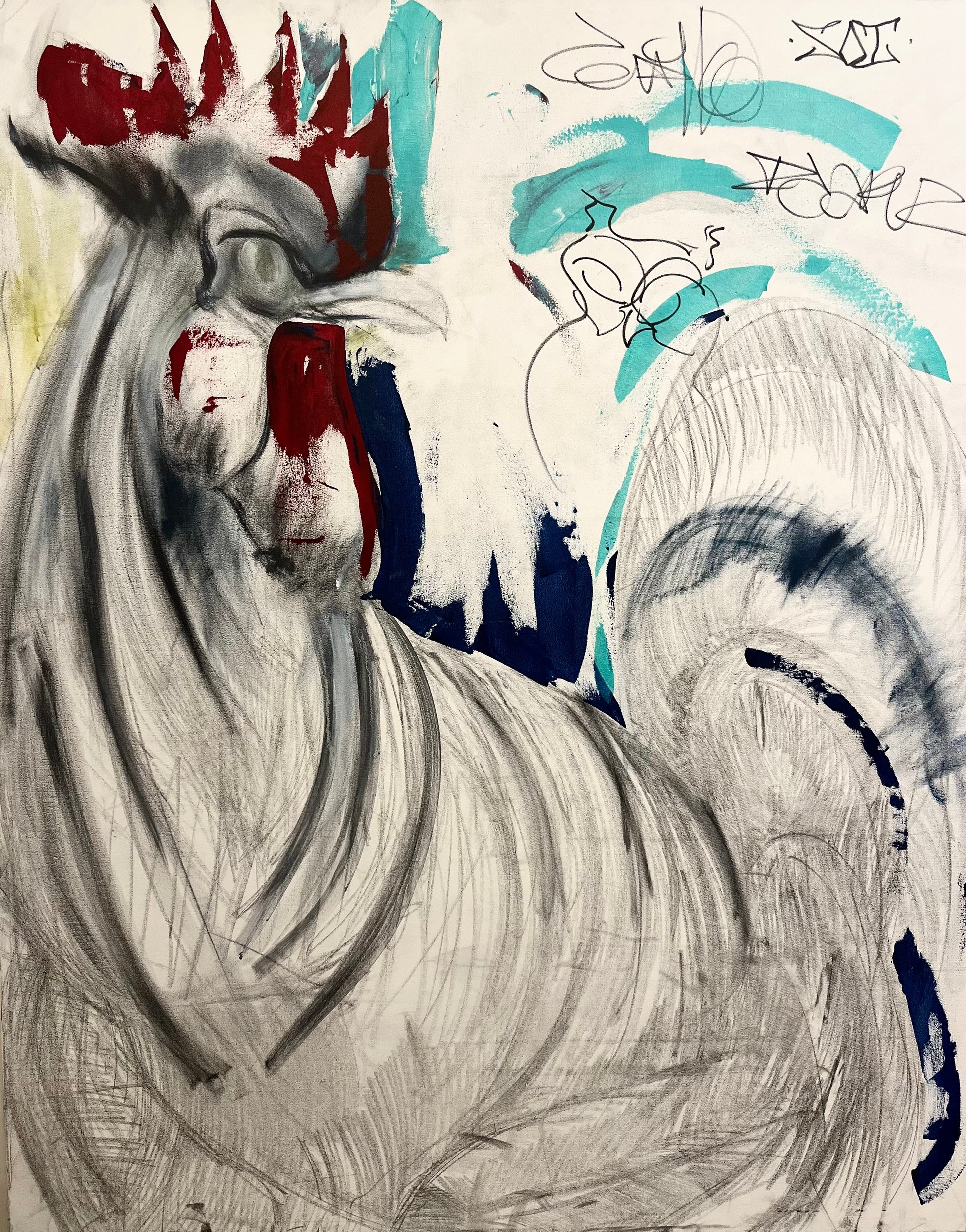If anyone knows how to paint a rooster, it’s contemporary Dominican-American artist Guillo Pérez III. Raised in the studio of his grandfather, renowned master painter Guillo Pérez, Guillo spent his early years surrounded by bold brushwork, rich cultural heritage, and the lively presence of rooster companions.