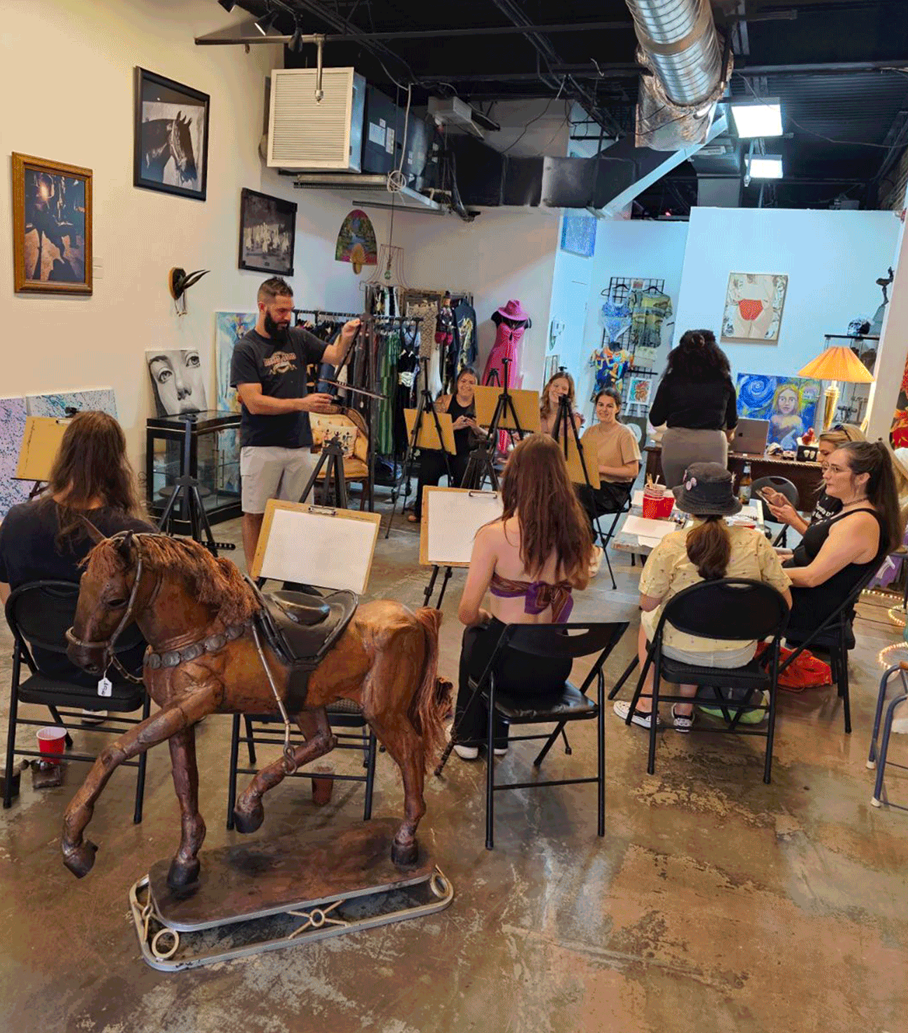 This is a very nice art gallery with painting groups and sessions. If you love to paint check this place out. He also has Merchandise of his art. They sell jewelry and clothing inside.